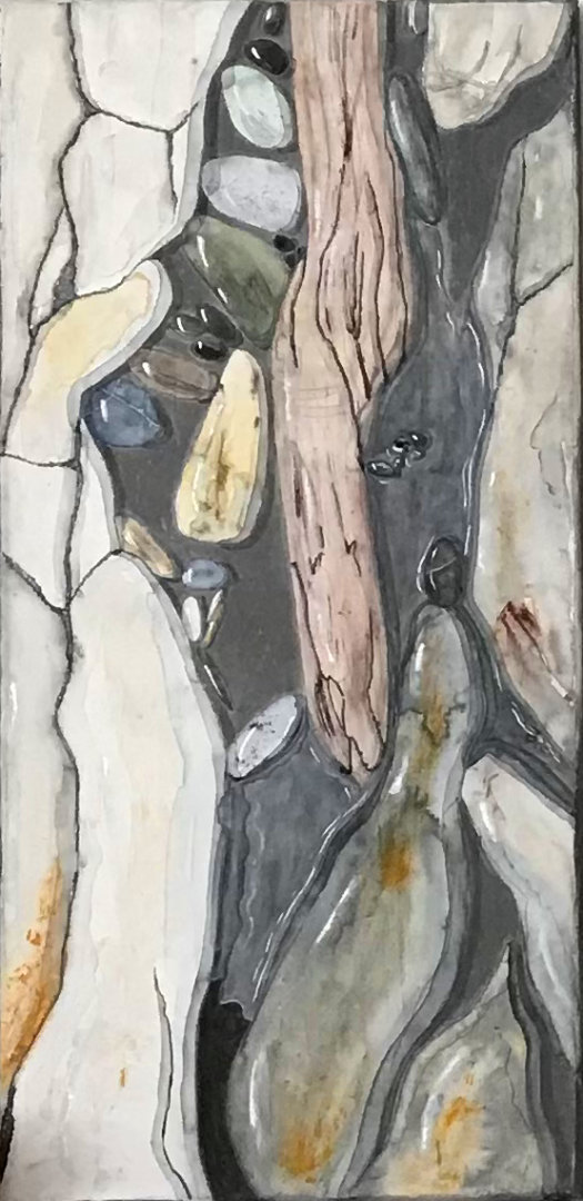 New Zealand stones I, 63 x 30 cm, watercolour mixed media on canvas